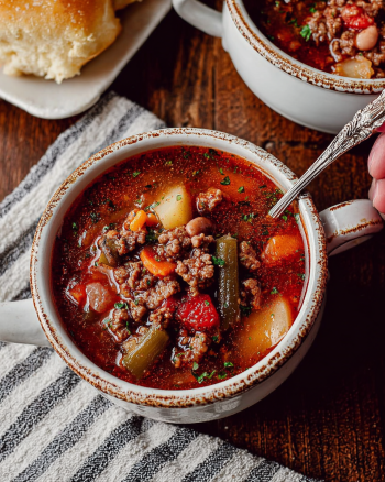 Cowboy Soup is a hearty and flavorful dish that combines ground beef, beans, vegetables, and spices. It’s a comforting meal that originated in the American West, often enjoyed by cowboys and ranchers. The soup is rich in protein and fiber, making it a filling option for lunch or dinner. With its rustic charm and simple ingredients, Cowboy Soup is perfect for gatherings or cozy family dinners.