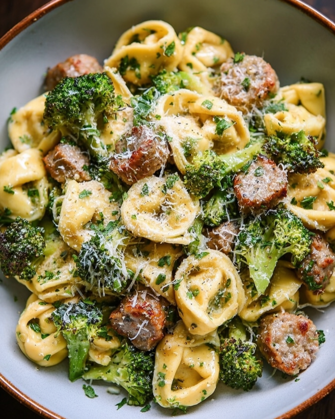 Creamy Garlic Parmesan Tortellini with Sausage delights all!
